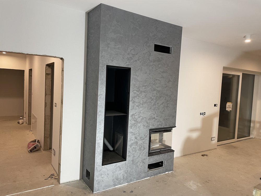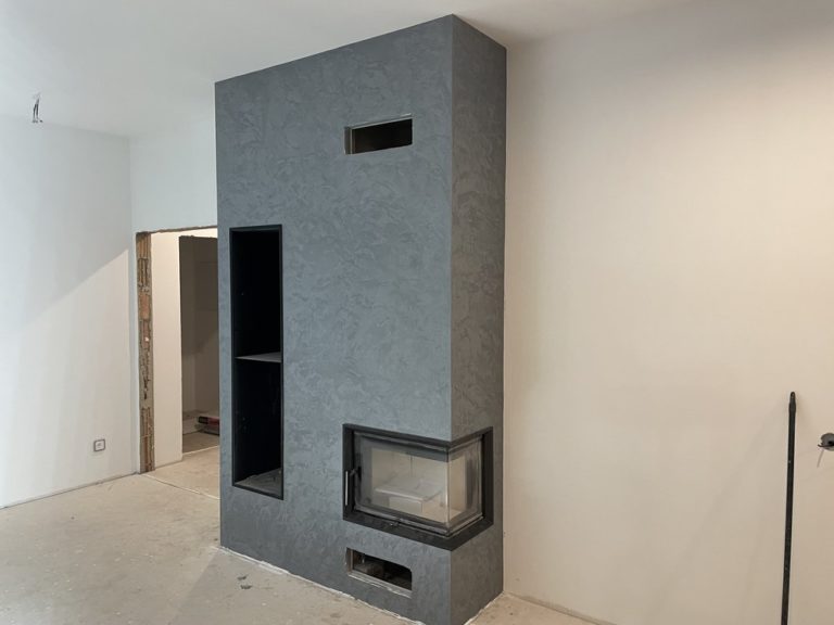 stěna zakuchyňskou linkoua krb