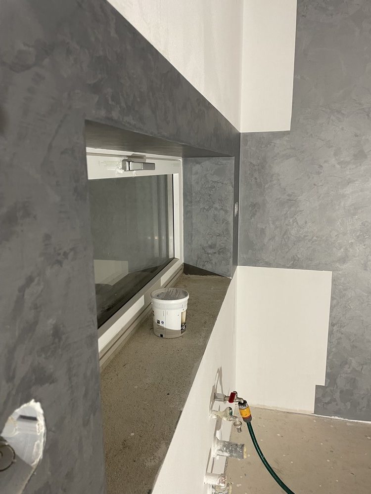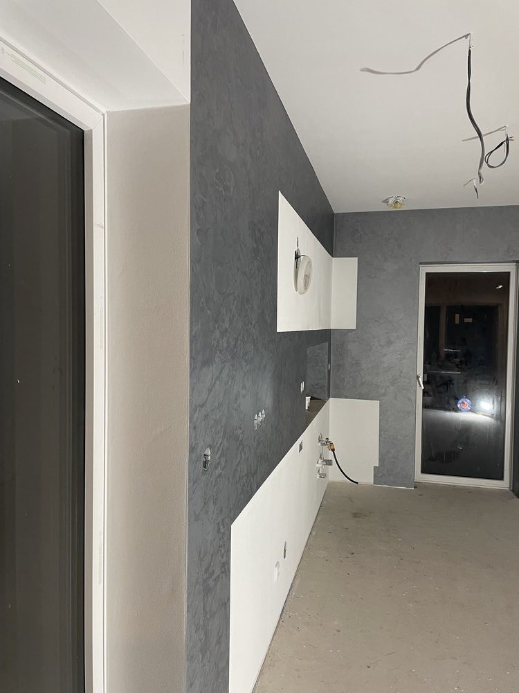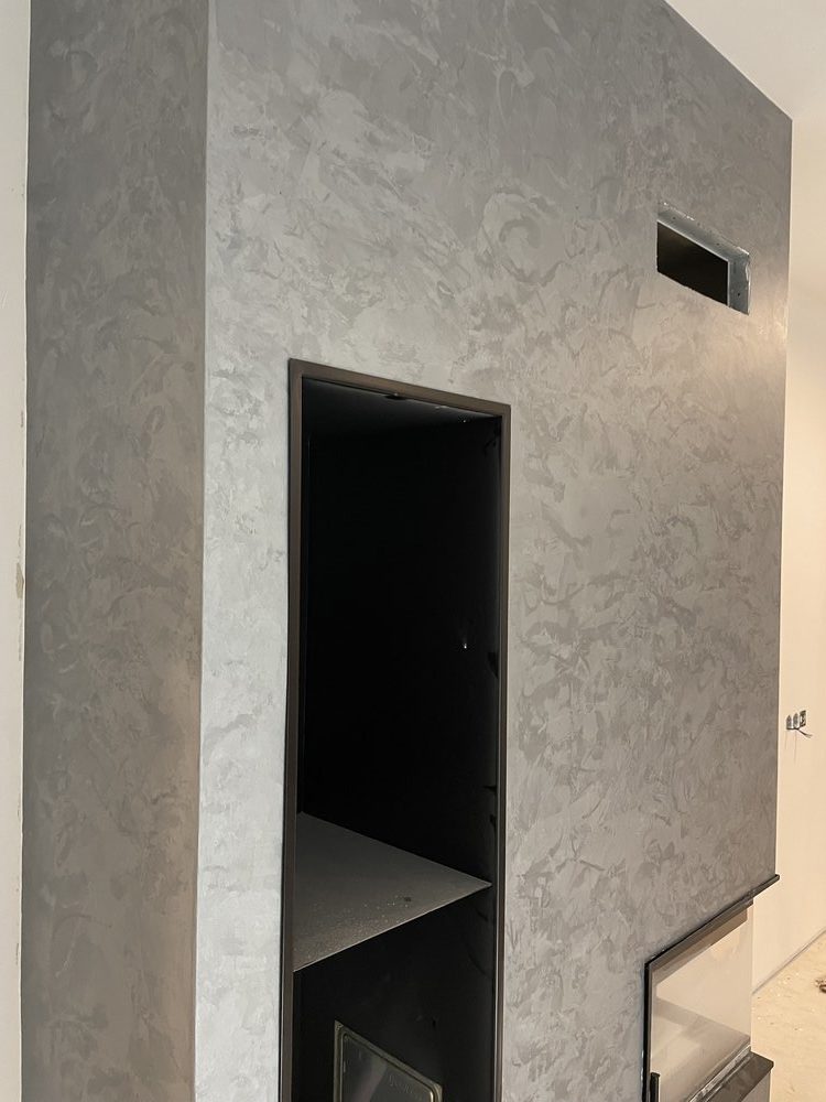 Dekorativní stěrka ve dvou vrstvách uzavřená dvousložkovým lakem s jemnými odlesky