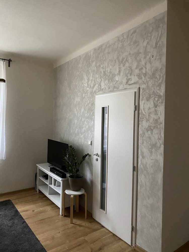 Dekorativní nátěr aplikovaný štětcem v jedné v vrstvě. Jemné textura, která dodává eleganci.