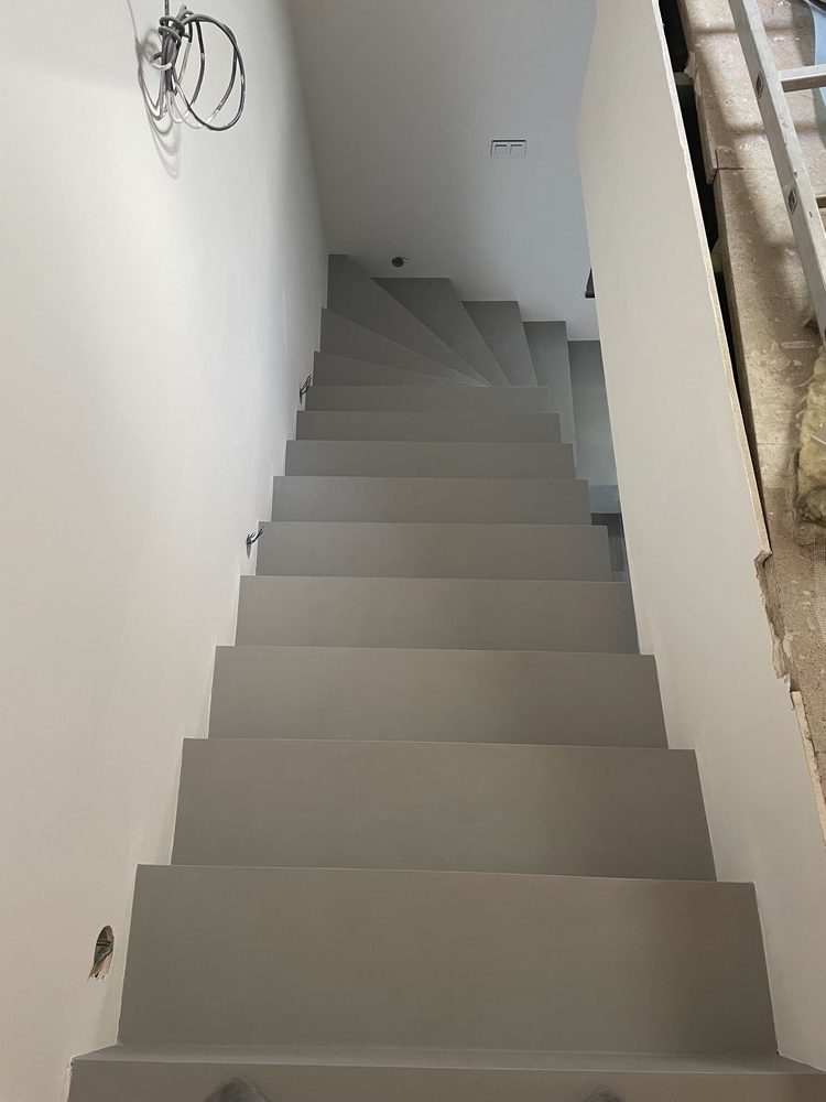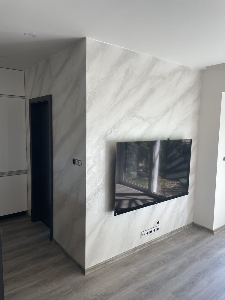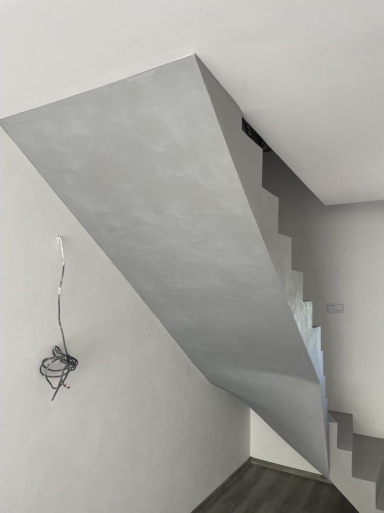 stěrka na stěnuza Televizi a na schodišti Za Tv byla použita stěrka s efektem marmorizzato imitující kámen a na celé schodiště byl použit microcement uzavřený epoxidovým lakem. Realizace:7/2021, Buštěhrad Použitý materiál:Italský materiál Valpaint Meteore 10 a I - beton „Pana Brabce můžu doporučit….„ investor hledáteněco podobného JSME NA TEL: +420 792 769 735